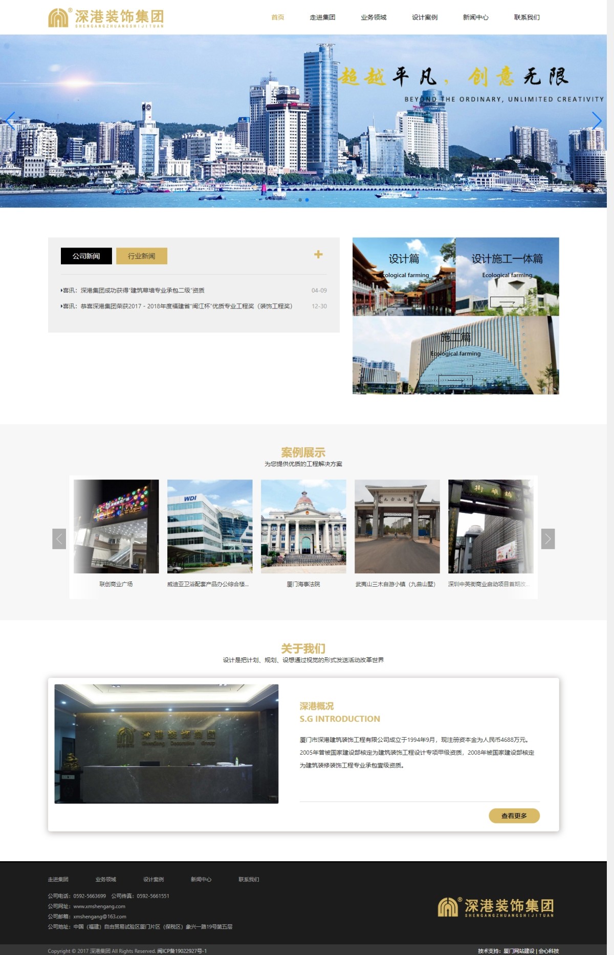 董事长林观彦先生来自负有盛名的建筑之地—广东省吴川市,在他旗下的厦门深港公司做为主要发起人之一,通过当地建筑装饰企业的各方努力,广东省吴川市于2014年9月2日获得中国建筑装饰协会授予的“中国建筑装饰之乡”之殊荣。经过二十年的努力和奋斗,公司已经形成立足厦门、走出福建、拓展全国、布局海外的战略格局,成为一个专门承接室内装饰设计与施工的老牌知名企业,专业从事星级酒店、娱乐场所、豪华别墅、体育场馆、办公楼、博物馆、商场、学校、银行、医院、住宅精装修等各类公共建筑及企事业单位的建筑装饰设计和施工。
